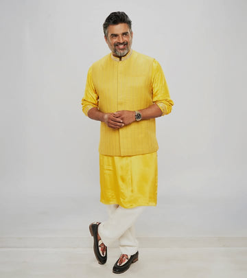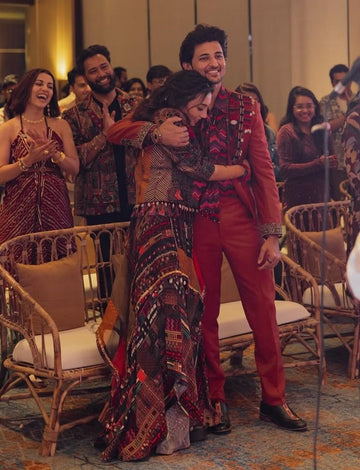 Riteish Deshmukh (@riteishd) brings the charm to Nupur Shikhare and Ira Khan's wedding reception wearing Banjaaran Studio's Oculus sneaker for men.