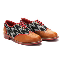 Banjaaran revisits ‘Ikat’ as an expression of modern classics. Entirely handcrafted, the handloom fabric merges seamlessly with the leather details in a classic brogue silhouette. The signature red accent details complement the rustic palette, making the pair a perfect accessory to lift up any look.